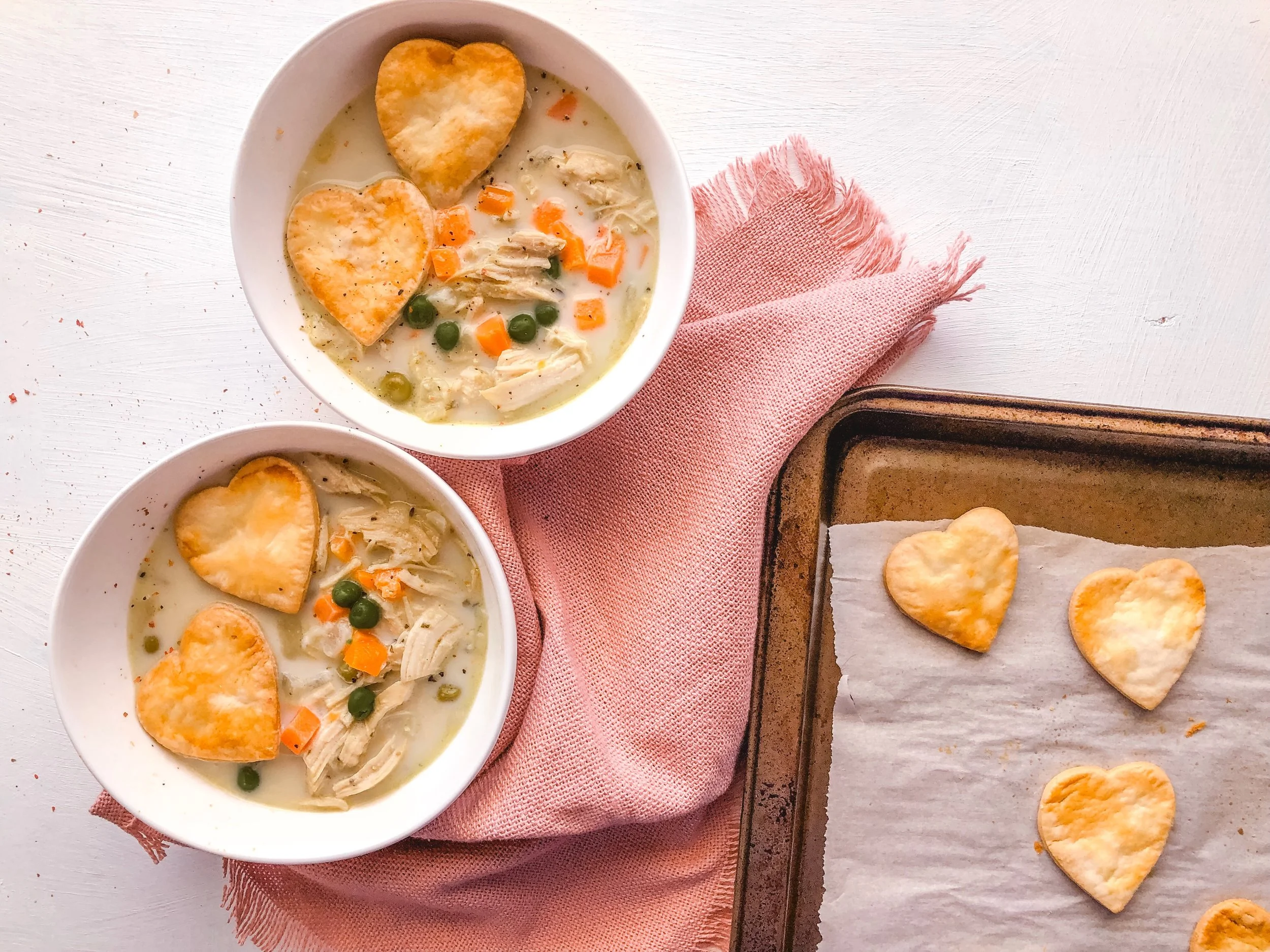 It’s not the healthiest stuff, but it’s also what makes pot pie POT PIE. Instead of omitting the puff pastry, I decided to portion it out and keep it macro-balanced. This move was so extra, but why not cut the pastry into pretty hearts?! You know, to ensure accurate portions :)